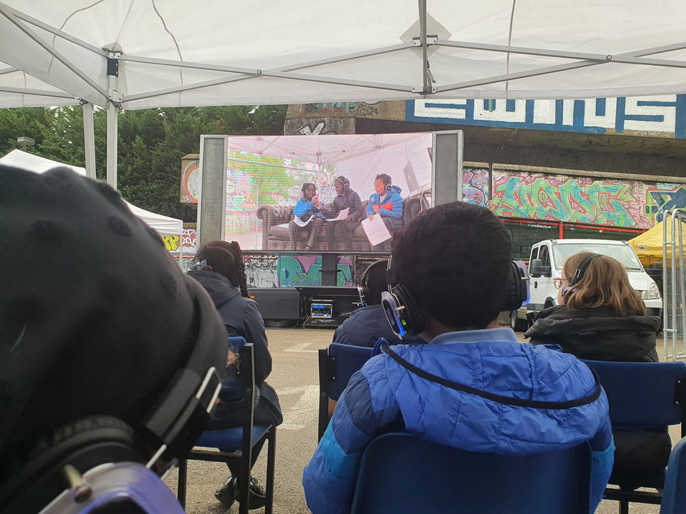 A live broadcast featuring local schoolchildren