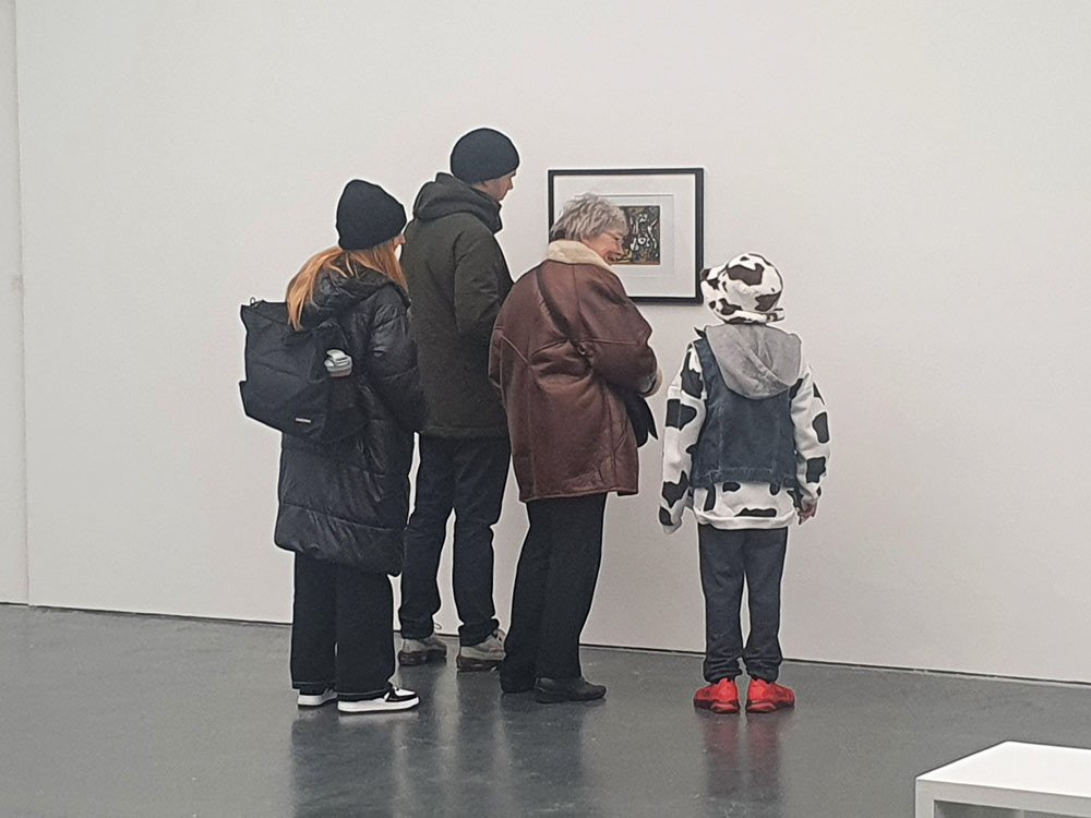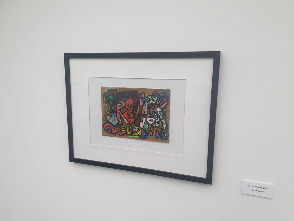 The exhibit makes full use of a new publicly accessible cafe and lobby space at the front of the college.