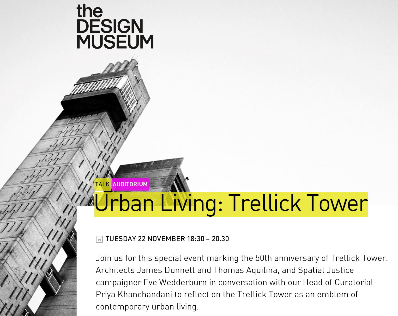 More info here: https://designmuseum.org/whats-on/talks-courses-and-workshops/urban-living-trellick-tower
