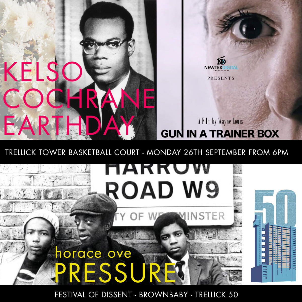 From 6pm we present the evening's feature film, Horace Ove's 'Pressure', on the Trellick outdoor cinema screen.