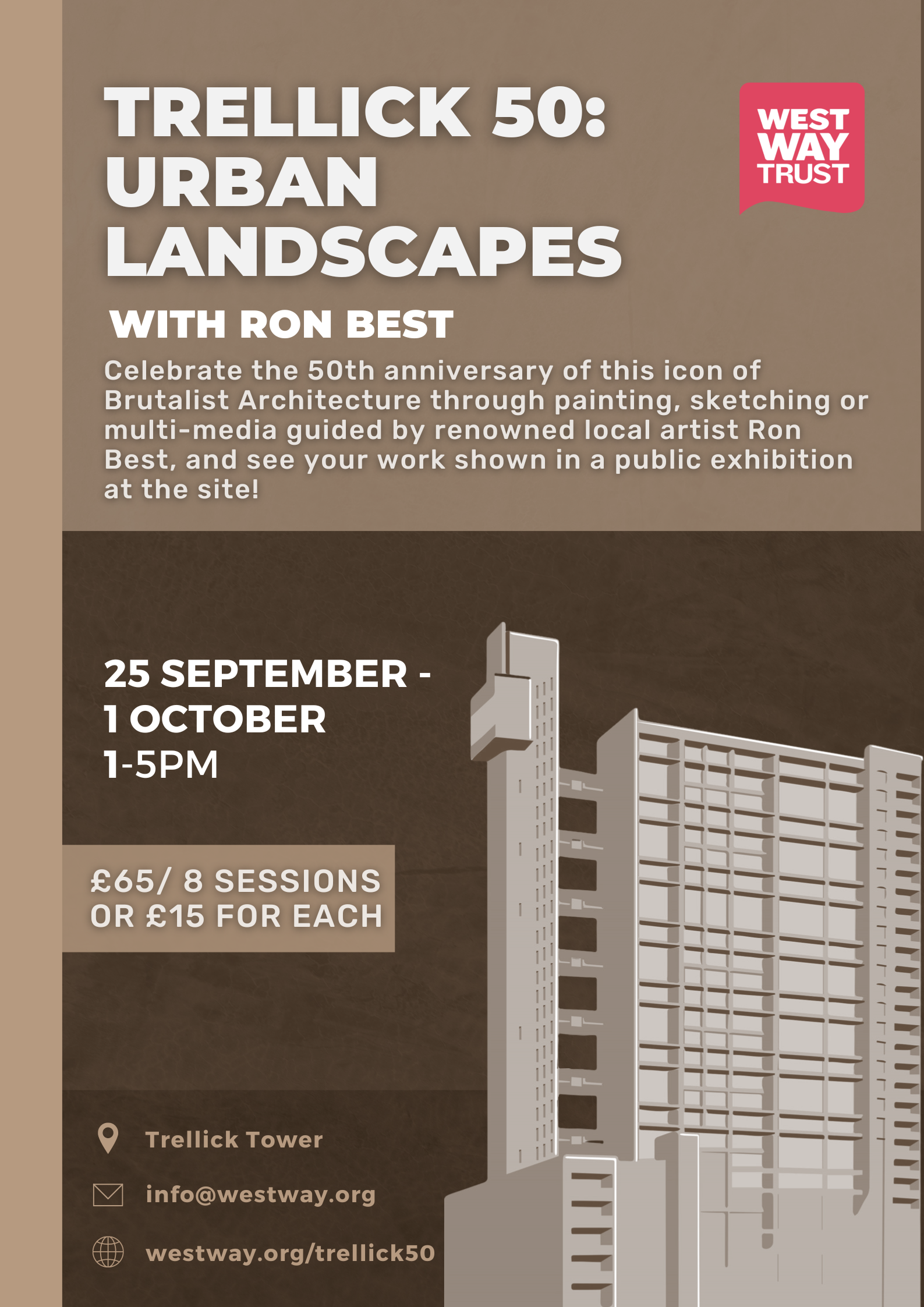 Celebrate the 50th anniversary of this icon of Brutalist Architecture through painting, sketching or multi-media guided by renowned local artist Ron Best, and see your work shown in a public exhibition at the site!