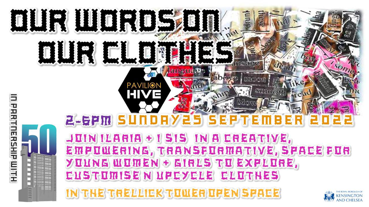 Ilaria and Isis from Pavilion Hive lead a creative session for young women and girls to customise and upcycle clothing.